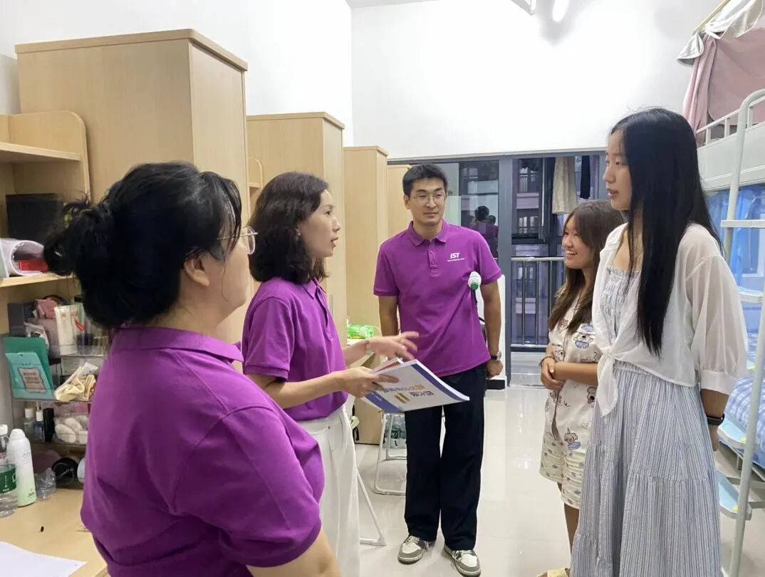 为更好地服务首届新生,学院特别安排新生辅导员入住学生宿舍,实行“24小时陪伴”制度,确保新生遇到问题能够及时得到帮助。副书记、副院长王娇娇慰问新生时还特意查看了新生学习用品,并叮嘱同学们一定要注意人身和财产安全,不要接受上门推销的物品,购买学习资料要通过正规渠道,遇到可疑情况要及时向宿管和辅导员反映。