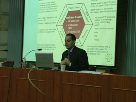 12月10日晚七点,西门子英国伦敦公司高级主管桑杰夫(JeoffSarney)先生应邀来我院做了一场关于现代公司管理特点的学术报告。科技馆二楼报告厅座无虚席。到会院领导及老师有副院长赵新顺,团总支书记李锋以及多位任课老师。报告期间,桑杰夫先生就西门子公司变革管理做了深入的分析,从改革背景、改革挑战、改革过程及改革结果四个方面为企业的改革发展提供一定的操作经验。并以独特的角度为中国企业的改革问题提出了一些建议,这些都为中国企业的改革发展提供了可以借鉴的经验。桑杰夫先生还针对同学们提出的相关问题做了深入细致的解答,并为同学们未来的职业发展提出了一些建议。