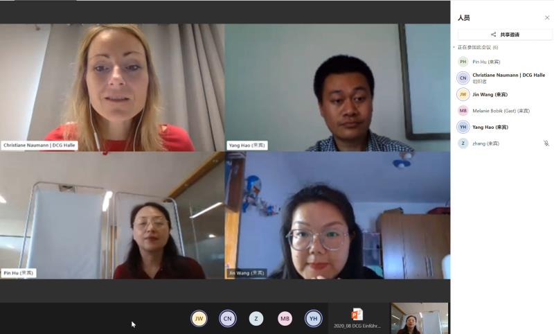 5月18日下午,我院与合作方大学德国安哈尔特应用技术大学举行教学研讨会,重点研讨了远程在线课程的开发与制作,并就疫情下的教学工作进行了深入交流,此次研讨会通过视频会议的形式进行。国际教育学院中德项目教师胡萍、杨昊、王瑾,德国安哈尔特应用技术大学教师Christiane Naumann、Melanie Bobik 参加研讨,并进行了教学分享。