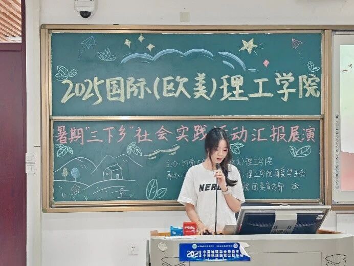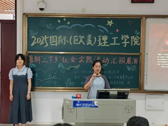 为进一步引导国际欧美理工学院学子在社会实践中拓展视野、强化社会责任,近日,国际(欧美)理工学院2025年暑期“三下乡”社会实践成果汇报会在郑州校区友兰学堂B305顺利举办。本次活动以“融汇学识践真知,服务乡村促发展”为主题,全面展现理工青年在实践中的探索与收获,通过成果展示、评委答辩等环节,学院深化了实践育人的成效。国际(欧美)理工学院团委副书记马迪、英语教师陈珊、辅导员杨震担任本次活动的评委。
