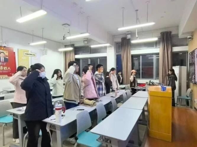 会议开始,团委副书记万蕊莹简要介绍了本次会议主要内容,明确了培训的目标和意义。随后,全体团支书重温入团誓词,铿锵有力的誓言久久回荡在教室。