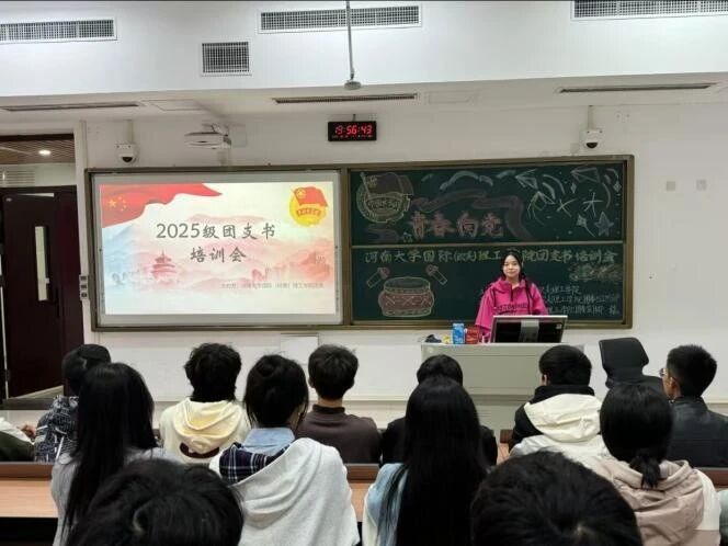 为进一步加强共青团建设工作,提升2025级团支书的理论素养和业务能力,河南大学国际理工学院2025级团支书培训会于10月12日19:00在金明校区综合教学楼3207和郑州校区友兰南楼B座306同步举行。学院团委组织部成员及2025级全体团支书参与了此次培训。