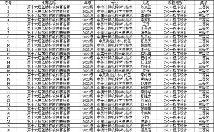 近日,全国第十六届蓝桥杯软件和信息技术专业人才大赛获奖情况公布。国际理工学院学子在大赛中取得瞩目成绩,有161人获得省级及以上奖项,其中,2人获国家级二等奖、6人获国家级三等奖、3人获国家级优秀奖。