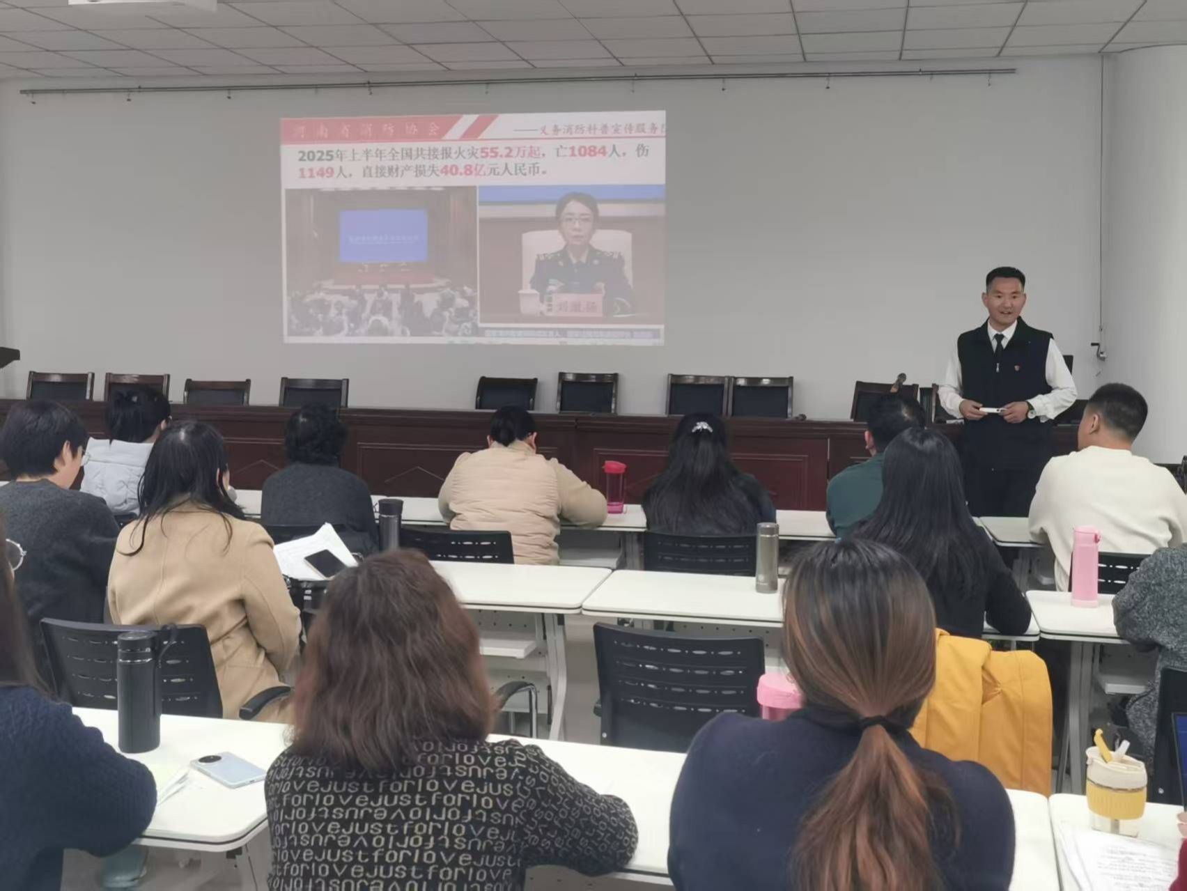 本次培训采用 “理论精讲 + 实操演练” 的模式,特邀省消防协会义务消防科普宣传服务队赵超磊教员为大家进行了讲解和操作演练。讲解环节,消防教员结合省内外火灾数据及近年来典型火灾案例,深入剖析了电气设备违规使用、电动自行车室内充电、易燃物品存放不当等高频隐患的危害机理,围绕消防安全 “四个能力” 、“一懂三会”的要求,系统讲解了火灾预警识别、火灾应急处置、火场逃生路线选择等实用知识。
