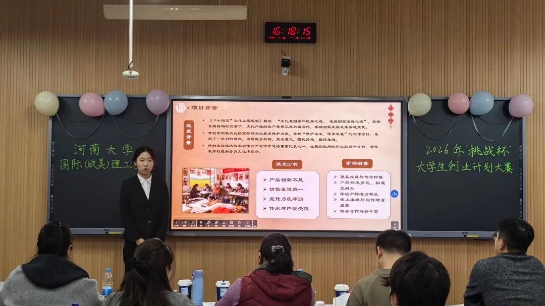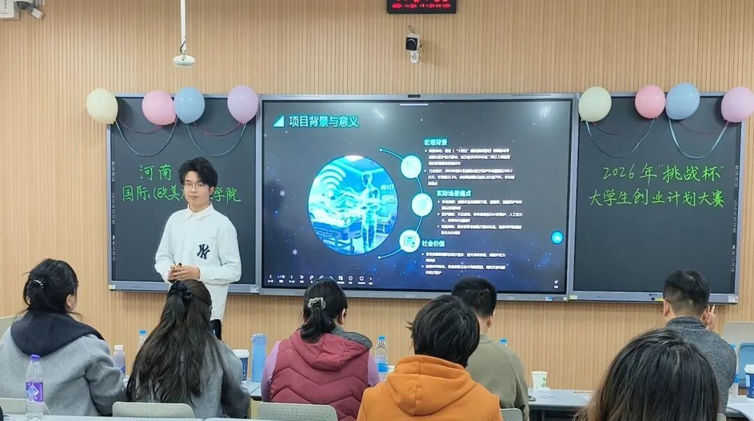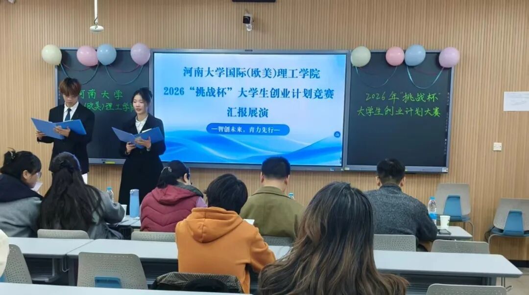 创新驱动发展,挑战铸就未来。为激发学生科技创新能力与实践应用水平,全面提升人才培养质量,11月30日下午,2026年“挑战杯”大学生创业计划竞赛国际理工学院初赛在金明校区综合楼3106顺利举办。学院教务办主任赵淑红、国际合作与交流办公室主任周静、德语教研室主任杨昊、团委书记马迪、2025级辅导员杨震担任比赛评委。