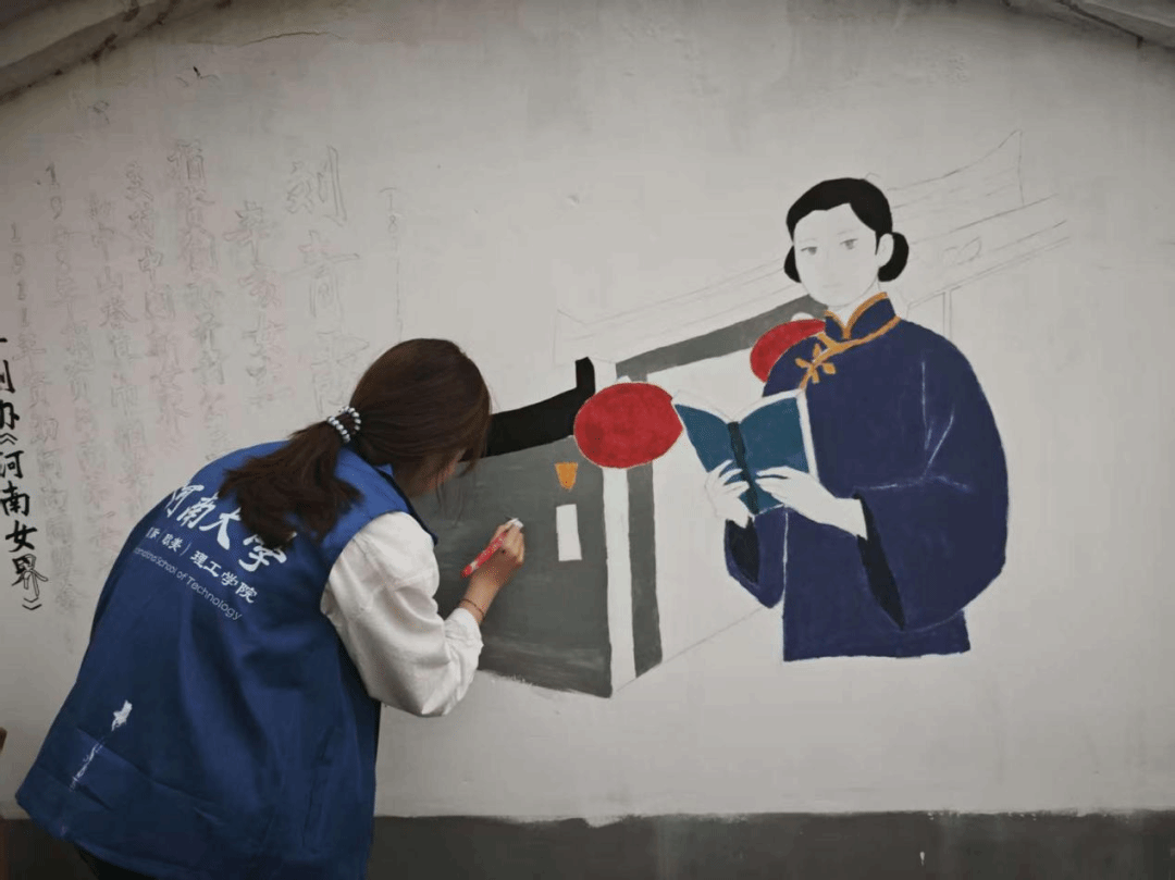 在三下乡的旅程中,我们追寻刘青霞的巾帼足迹。刘青霞冲破时代桎梏,倾资办学、投身革命的壮举,如璀璨星光,照亮我们前行的道路。在社区,我们手持画笔,以墙为纸,将刘青霞的故事与精神倾注笔端。从构思到落笔,每一笔色彩都饱含敬意,每一幅图案都传递力量。当原本单调的墙面焕发出崭新光彩,我们深知,不仅绘就了美丽风景,更播撒下了英雄精神的种子。暮色中,驻足凝视这面承载心血的墙绘,晚风轻拂,仿佛刘青霞的精神也在这片土地上生生不息,这段经历,将永远铭记于心。