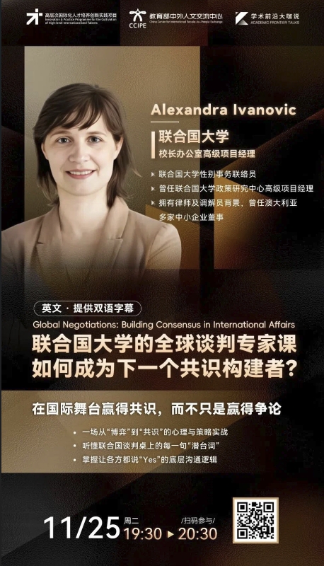 主题:联合国大学的全球谈判专家课:如何成为下一个共识构建者?