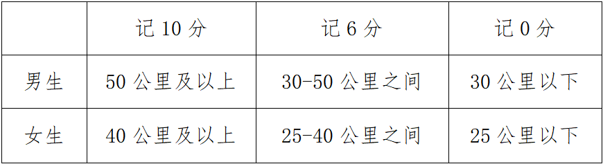 参加“校园阳光健康跑”的成绩占本学期体育课总成绩的10%。评分规则如下: