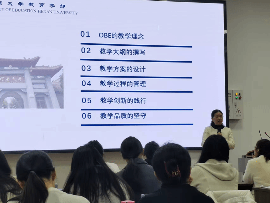 讲座伊始,岳教授引导我们从OBE理念出发,重新审视教学设计路径。她强调,教学应首先明确“产出目标”,再据此规划相应的教学活动、方法与手段,使教学设计兼具创新性与高阶性,引导学生“带着问题走进课堂,又带着问题走出课堂”,从而持续激发其探究意识与解决问题的主动性。随后,岳教授聚焦教学大纲的撰写要点,厘清了教案与教学设计之间的区别,解答了长期困扰一线教师的诸多疑惑。此外,她还系统阐述了教学思路的梳理、教学内容的筛选、教学方法的运用、评价方式的设计、课件制作的关键要素以及教学过程的组织与管理,内容覆盖教学全流程,兼具理论高度与实践指导价值。
