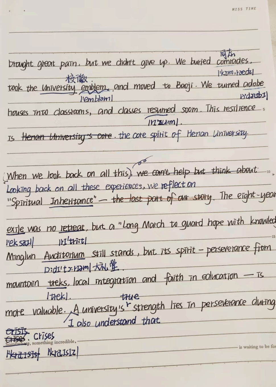 此次教学探索以真实语料为抓手,让阅读课真正 “活” 了起来。教研室充分利用暑期校史翻译成果,将中英文校史稿件作为真实阅读素材引入课堂。学生通过对比研读中英文文本,分析语言表达差异,主动提出翻译修改建议,在提升英语阅读能力的同时,批判性思维能力也在真实语境的锤炼中不断增强。
