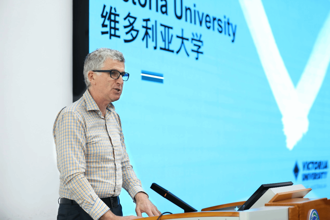 罗伯·斯特拉思迪对河南大学的发展成就表示赞赏。他指出,两校合作办学项目生源质量持续提升,充分体现了两校合作的扎实基础与良好声誉。他介绍了维多利亚大学在校区建设、学生规模、人才培养、国际科研、社会声誉等方面的最新进展,并感谢河南大学对两校项目的支持与付出,表示愿继续为两校合作注入新动能。