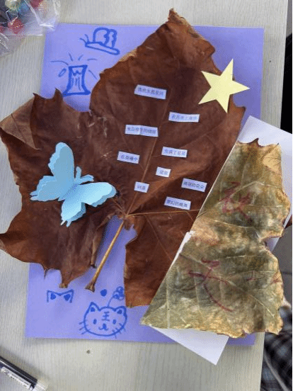 每一件“枫叶小诗”都藏着专属心事,叶脉间的文字、卡纸拼接的巧思,是这个秋天最温暖的纪念。