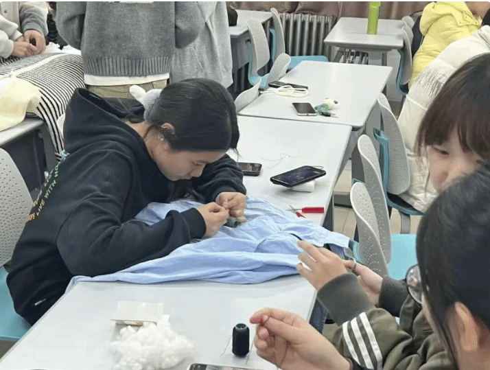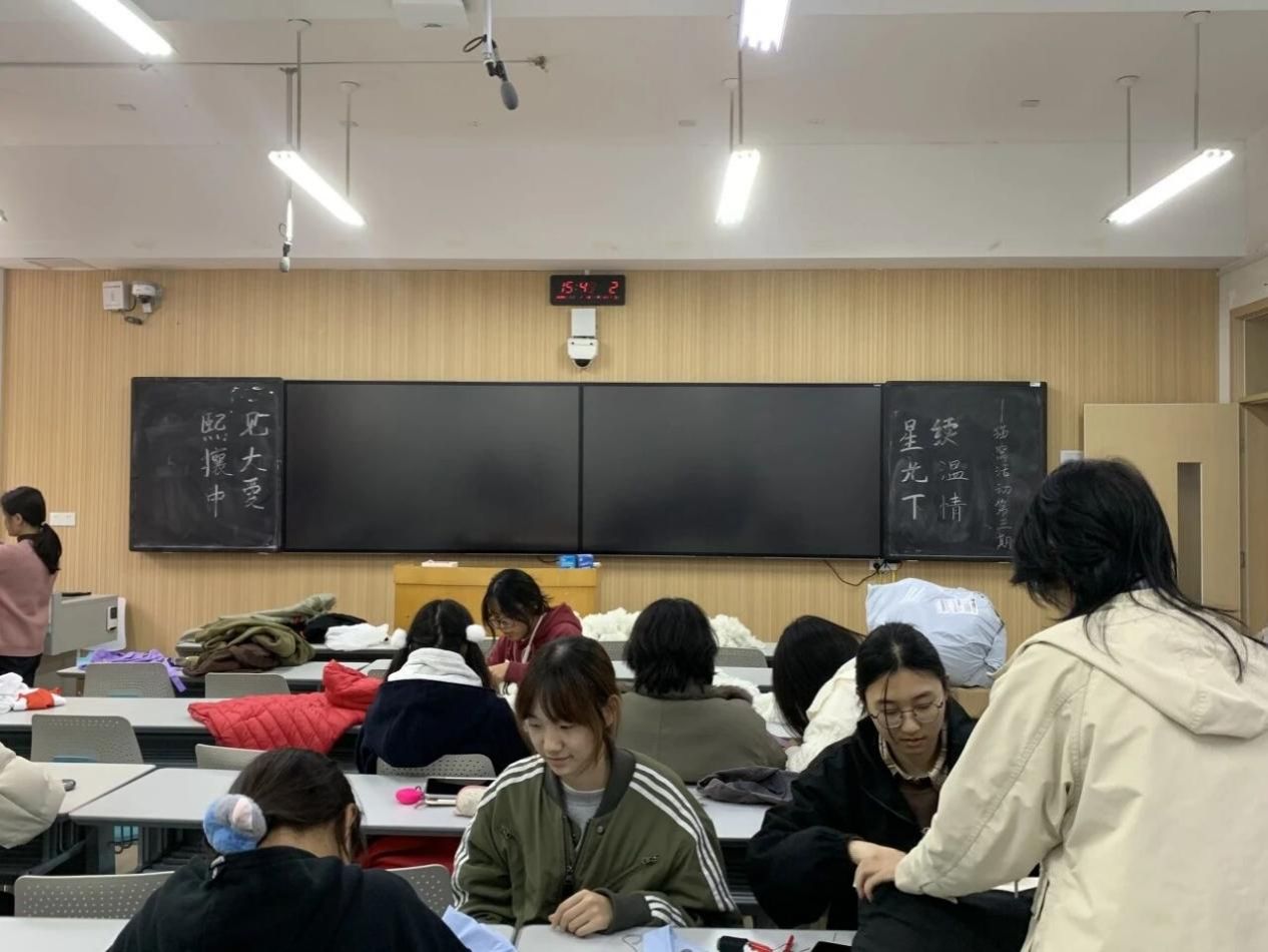 活动现场,各小队有序领取闲置旧衣、蓬松棉话、彩色针线等材料后,迅速投入创作。团队成员精准裁剪衣料,打磨出圆润边缘后,细心填充蓬松棉。现场不时传来交流的声音,氛围轻松融洽,欢声笑语中,每一道工序都饱含着对流浪猫咪的温柔。