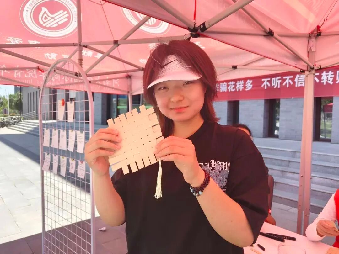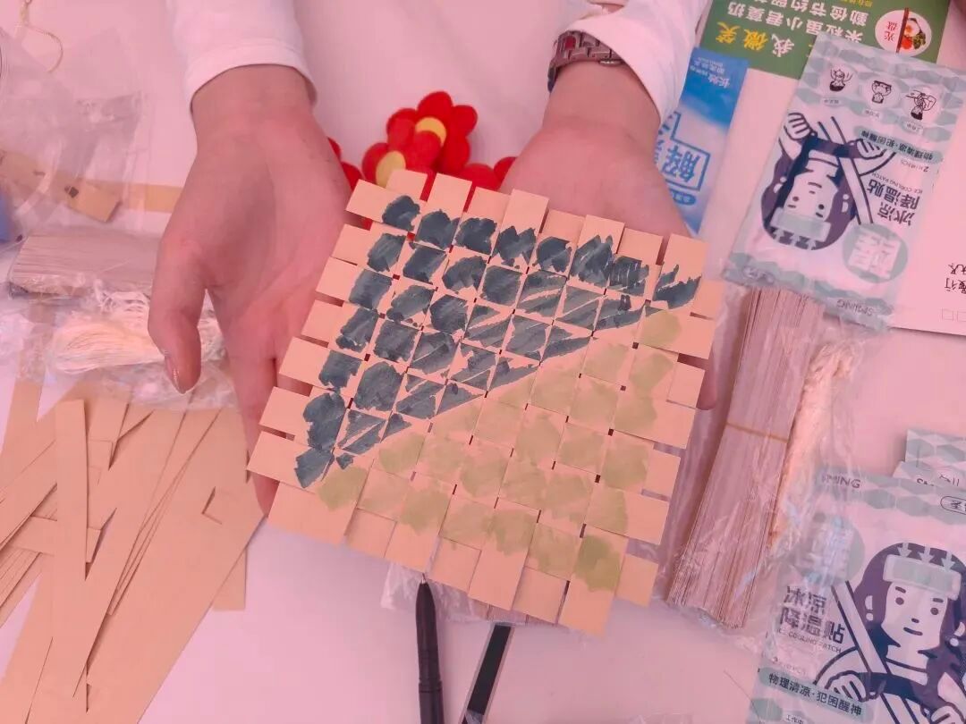 细小的竹片在巧手下构出新意,浓浓的爱意在文字间得到传递。在参与者们细心的编织下,一个个精巧的小艺术品闪亮现身,让围观同学们连连惊叹。提笔写下对母亲的祝福与感谢,温暖的爱意更是从竹片的缝隙中倾溢而出。将这小小的艺术品捧在手心,同学们仿佛感到了爱的力量与温暖,笑意也在脸上绽放开来。