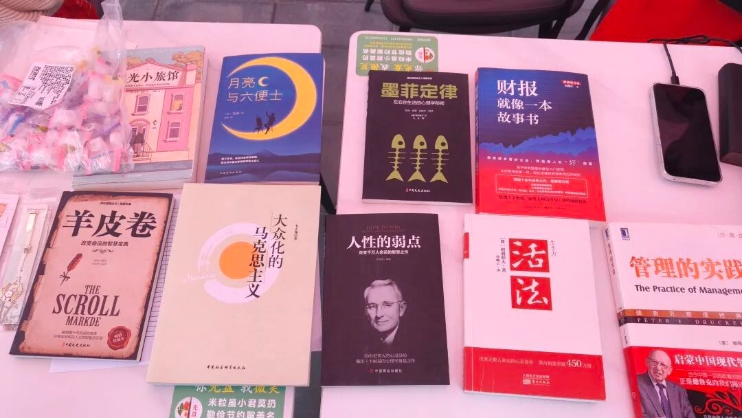 而另一侧的图书漂流站也别具特色,众多师生前来参与。书架上摆满各类书籍,吸引师生们认真挑选心仪读物,沉浸在选书的乐趣中。除此之外,师生们也从私人藏书中精心筛选捐赠图书,用钢笔在扉页认真写下推荐语,分享读书感悟,寄托对后续读者的美好期许。这些饱含心意的书籍在师生间传递,促进了思想交流与知识共享,书香在校园持续弥漫,文化氛围也愈发浓厚。