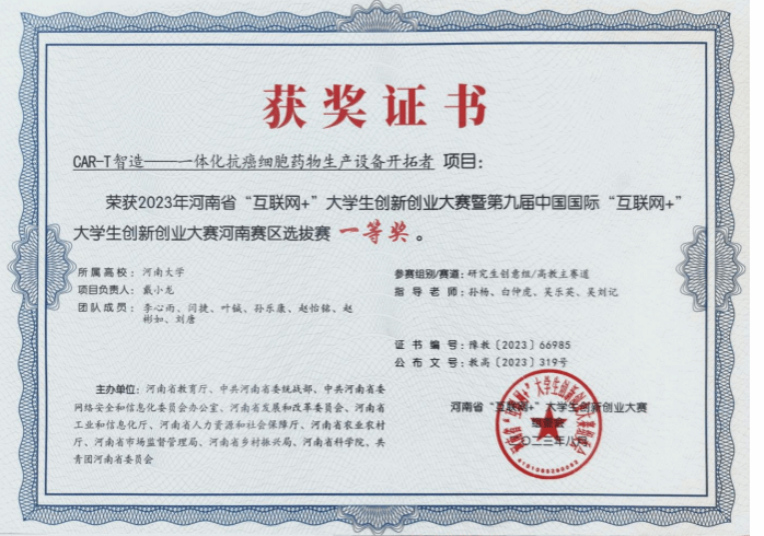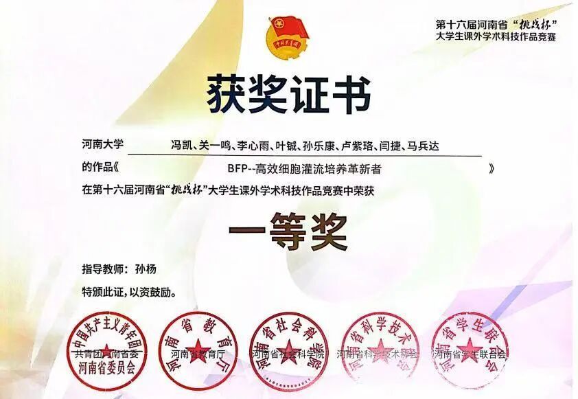(5)第十六届河南省“挑战杯”大学生课外学术科技作品竞赛省级一等奖等